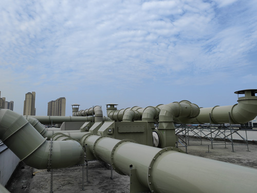 研究室有機廢氣治理 → 活力性炭吸附器 → 引軸流風機 → 減排
